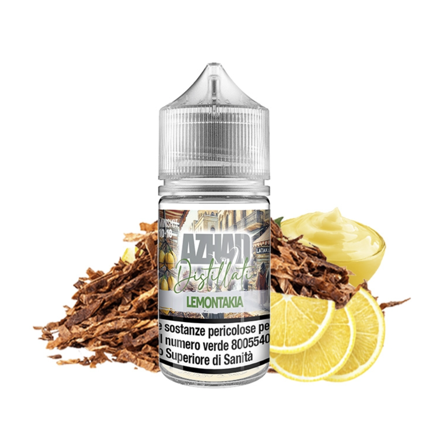 Azhads Elixirs Lemontakia – Distillati – Mini Shot 10+10 è un aroma scomposto che combina il sapore del tabacco con una nota di limone.