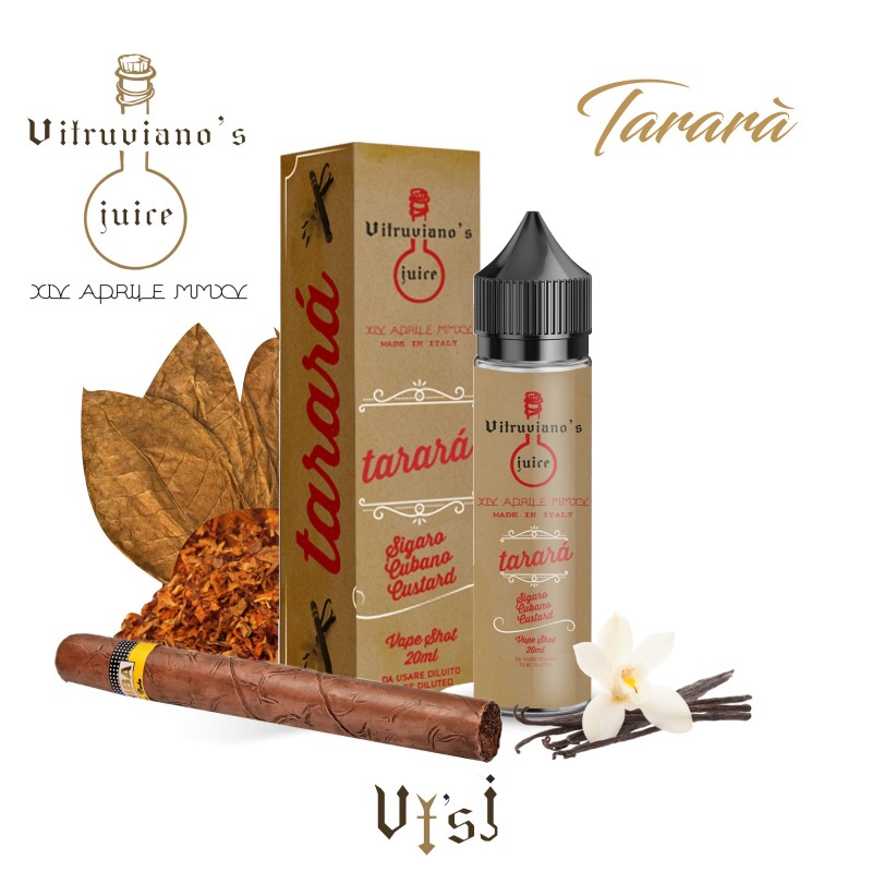 Aroma scomposto Vitruviano’s Juice Tarara’ 20ml. Un aromatico sigaro cubano con una dolce nota di vaniglia.