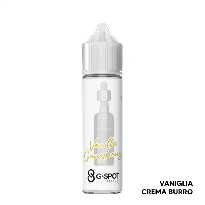 Vanilla Gangbang Pod Edition di G-Spot è un aroma scomposto al gusto di Vaniglia, Crema e Burro.