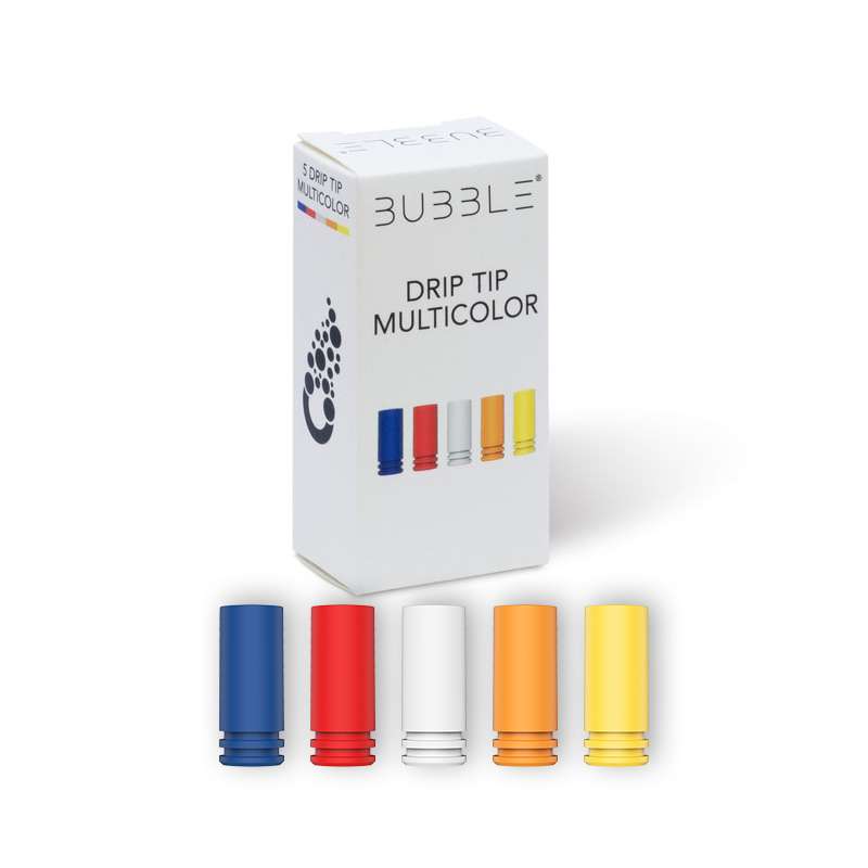 Drip tip BUBBLE multicolore , confezione da 5 colori, arancione , bianco, rosso , oro , blu