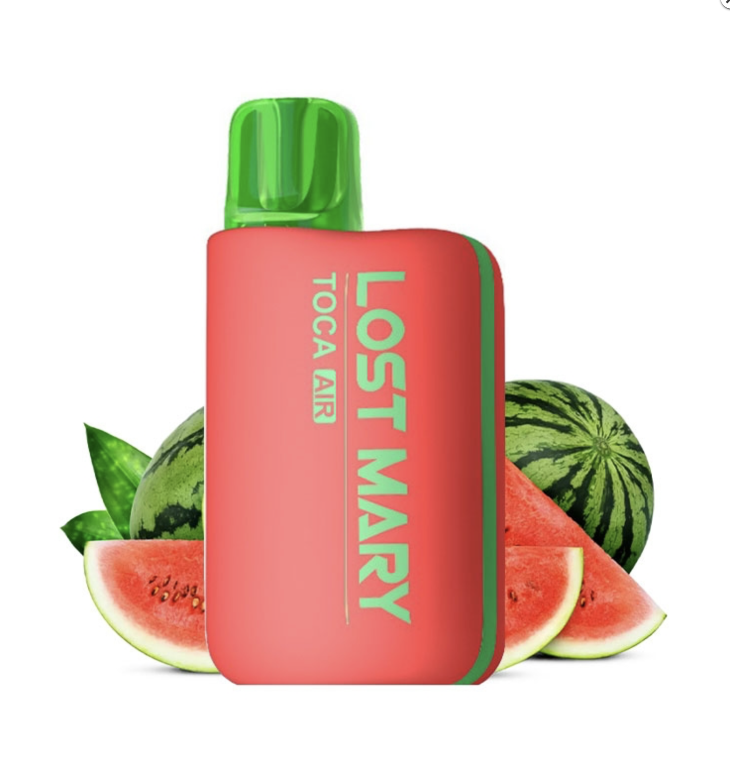 Lost Mary Toca Air Kit è una sigaretta elettronica con una batteria ricaricabile da 750mAh e una pod precaricata usa e getta da 2ml al gusto di Anguria, con 20 mg/ml di nicotina.